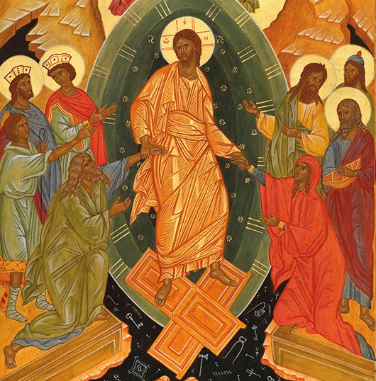 After the sabbath, as the first day of the week was dawning, Mary Magdalene and the other Mary went to see the tomb. And suddenly there was a great earthquake; for an angel of the Lord, descending from heaven, came and rolled back the stone and sat on it. His appearance was like lightning, and his clothing white as snow. For fear of him the guards shook and became like dead men. But the angel said to the women, ‘Do not be afraid; I know that you are looking for Jesus who was crucified. He is not here; for he has been raised, as he said. Come, see the place where he lay. Then go quickly and tell his disciples, “He has been raised from the dead, and indeed he is going ahead of you to Galilee; there you will see him.” This is my message for you.’ So they left the tomb quickly with fear and great joy, and ran to tell his disciples. Suddenly Jesus met them and said, ‘Greetings!’ And they came to him, took hold of his feet, and worshipped him.